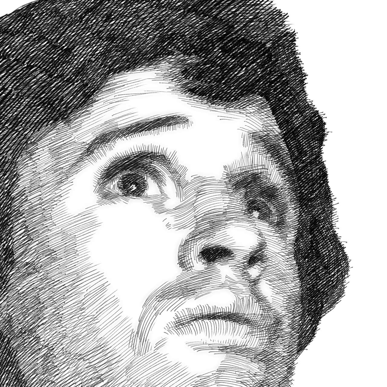 Das ist wieder so ein Standbild, das mich fasziniert hat, ohne dass ich sonst etwas vom Film wusste. Ich habe einfach die Chance genutzt, einen interessanten Gesichtsausdruck abzuzeichnen. Dass ich den Film nicht gesehen habe, heißt freilich nicht, dass ich nichts darüber schreiben kann.